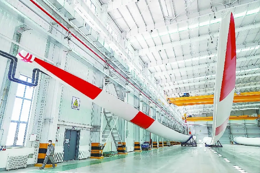 在张北艾郎风电科技发展有限公司,刚生产好的叶片正在等待装车。武殿森摄