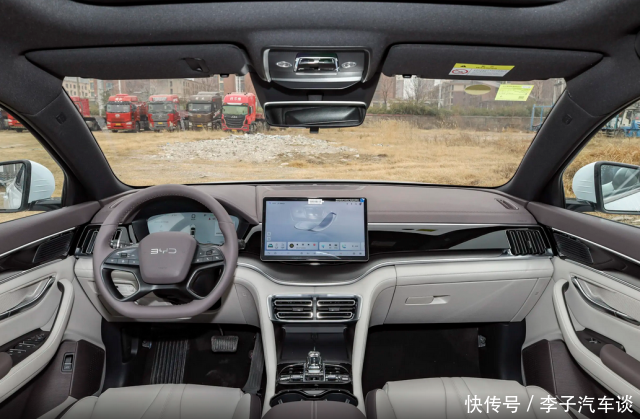 进入宋PLUS EV的座舱,软皮、钢琴烤漆面板以及银色饰条组合在一起,看着并不凌乱,遗憾的是,钢琴烤漆材质落灰后在阳光照射下很明显,而且手指触碰也会留下指纹,打理起来还需要花点儿时间的。平底式方向盘支持四向调节功能,配色与座舱整体风格相统一,穿过上方镂空区域能看到12.3英寸仪表盘,仪表UI界面清爽、干净,行车信息显示直观,便于驾驶员查看。